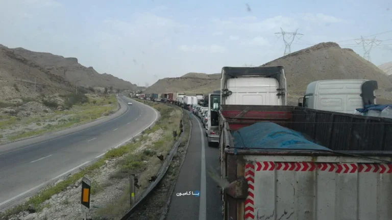 ترافیک تنگه زاغ بندرعباس همچنان ادامه دارد:مسیر پرخطر برای رانندگان
